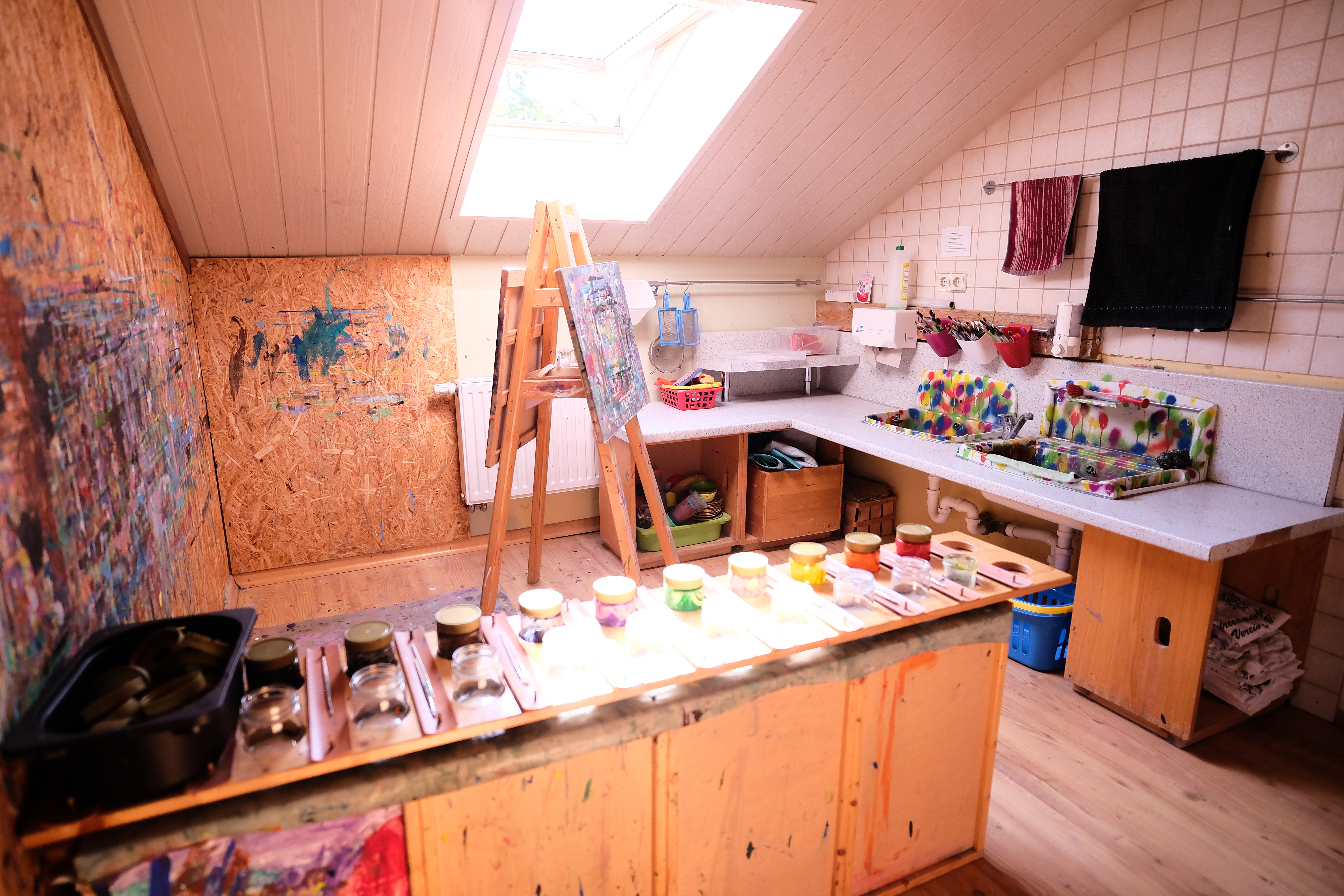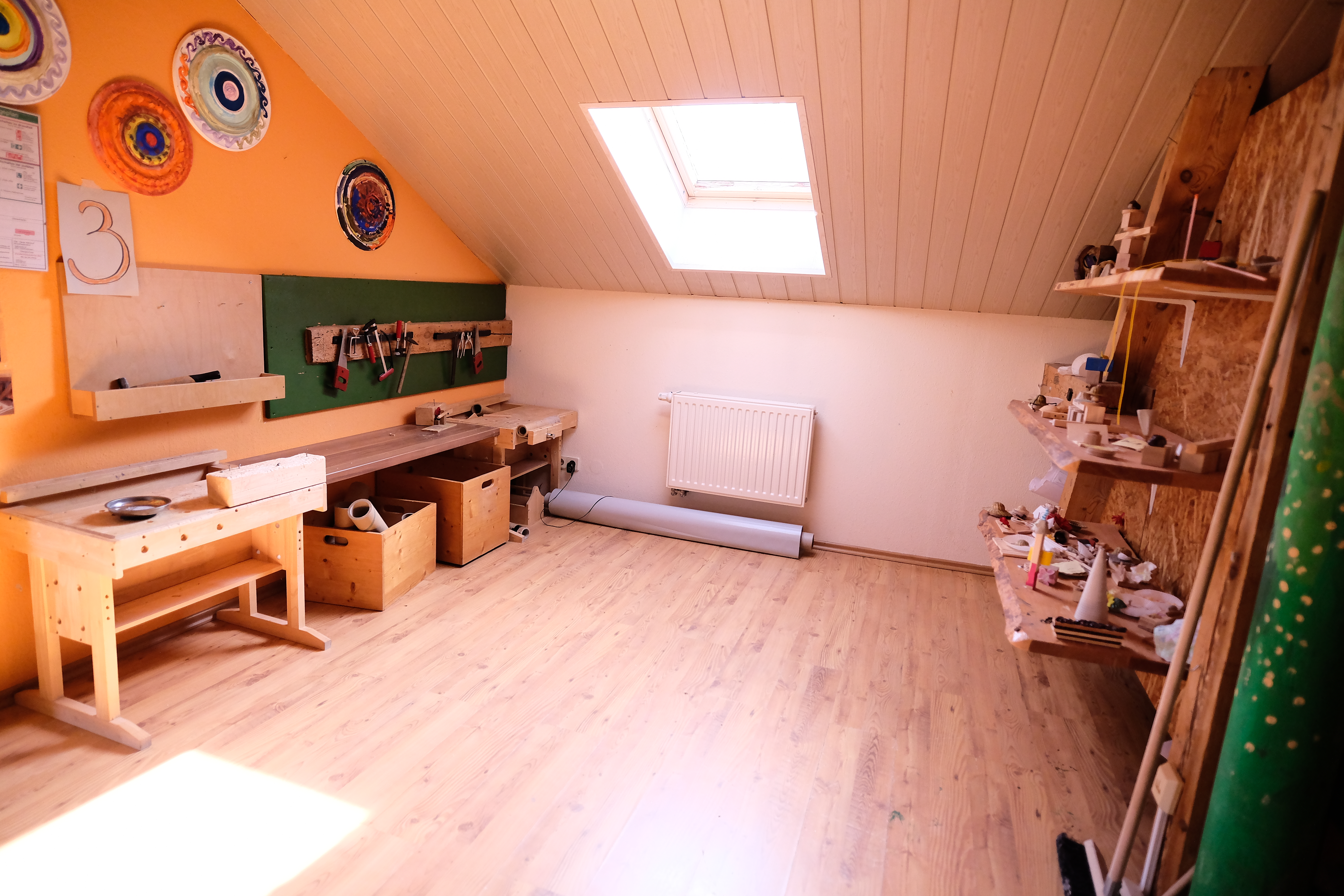 - zwei Aufenthaltsräume mit Miniatelier und Hochebene